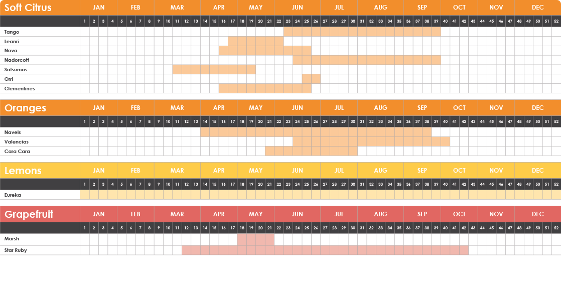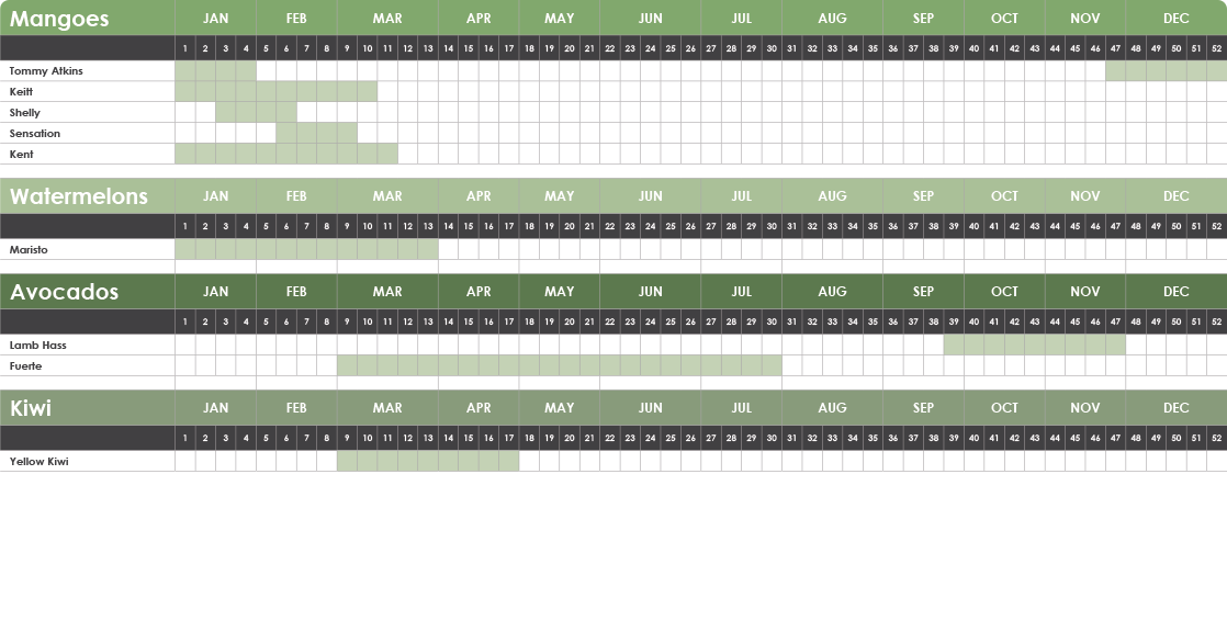 With farms and packhouses across southern Africa we are able to supply a wide range of fresh produce in every month of the year. Browse our availability calendars below for much more information. Or Contact us to speak to a representative now.